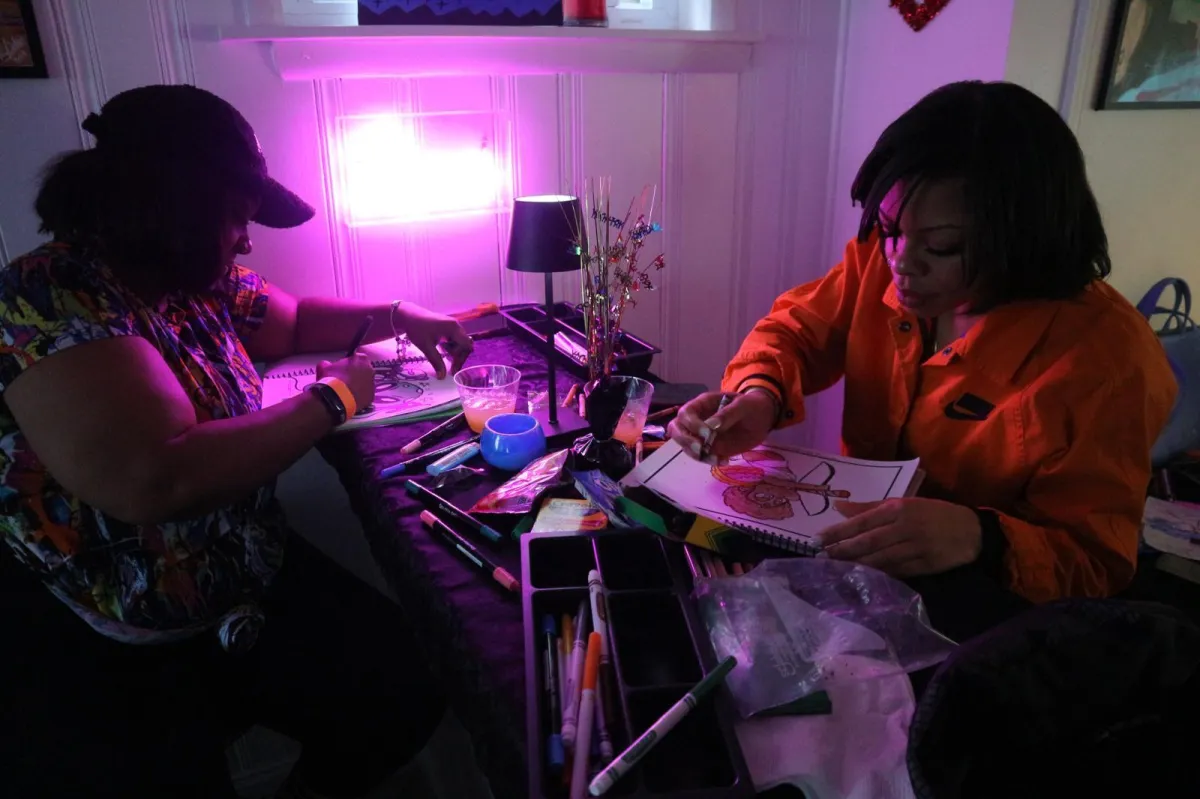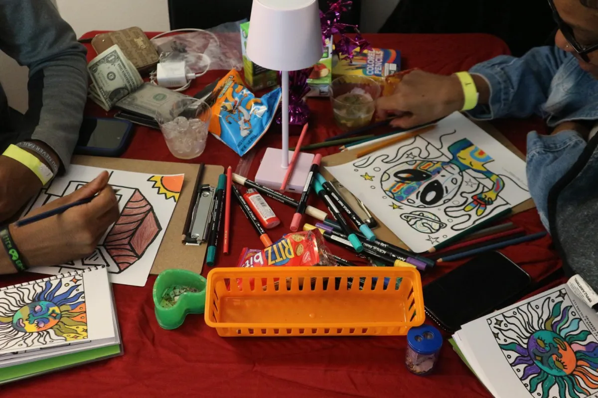 Participants enjoy unlimited access to a variety of coloring materials, including crayons, colored pencils, and original coloring sheets to inspire creativity.